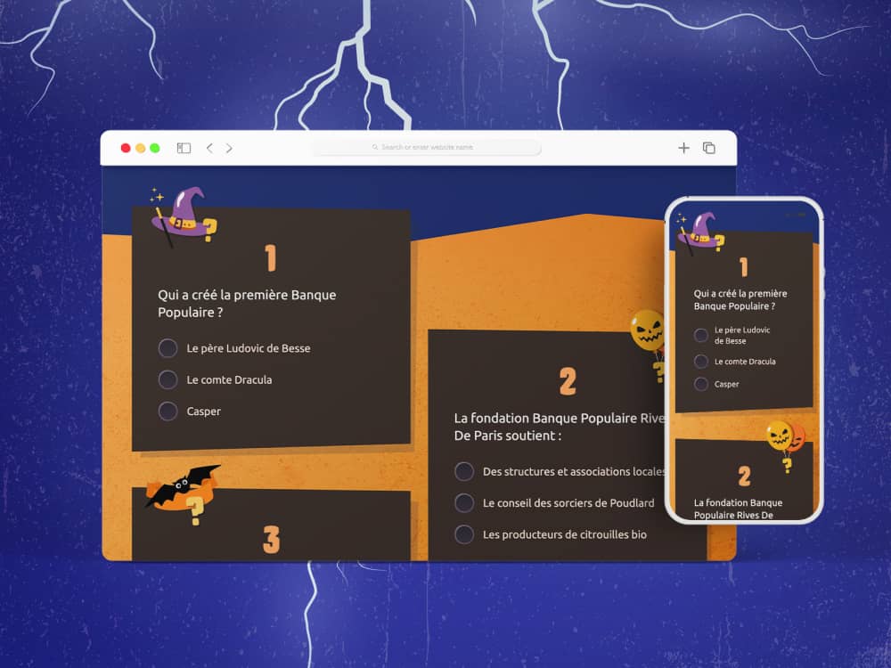 La Banque Populaire Rives de Paris nous a missionné pour la 3ème année consécutive pour réaliser un jeu concours articulé autour de l'évènement. Celui-ci consiste en une landing page comprennt un quiz avec des lots à gagner (sur tirage au sort parmi les soumissions gagnantes).
